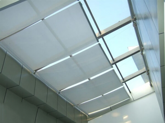 – Rèm che giếng trời tự động thích hợp cho những không gian giếng trời nằm cao trên trần nhà.